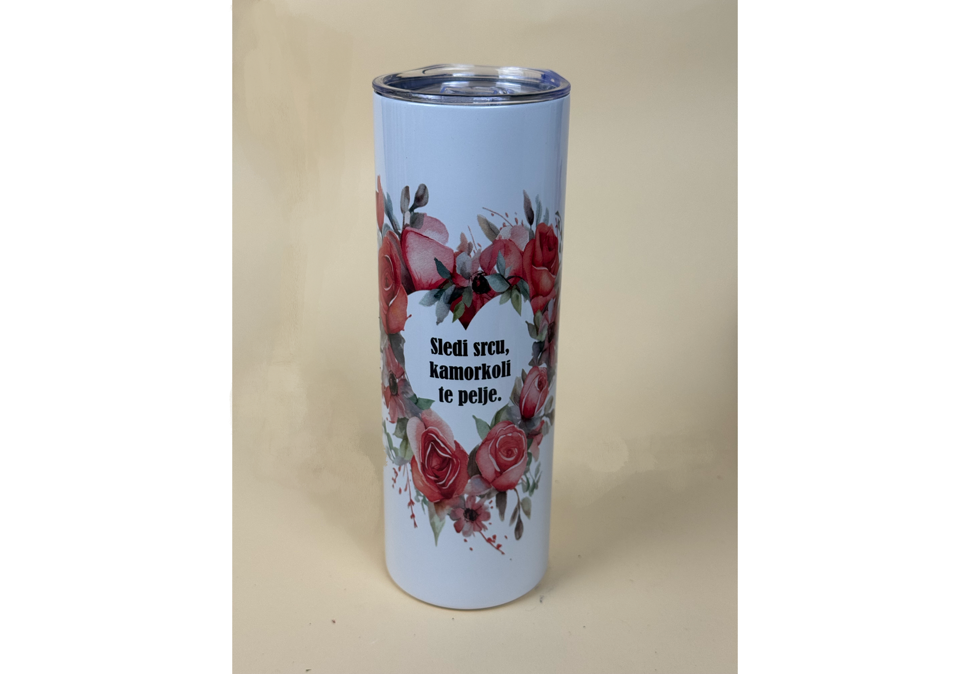 ☕ eleganten lonček z napisom »Sledi srcu kamorkoli te pelje«,