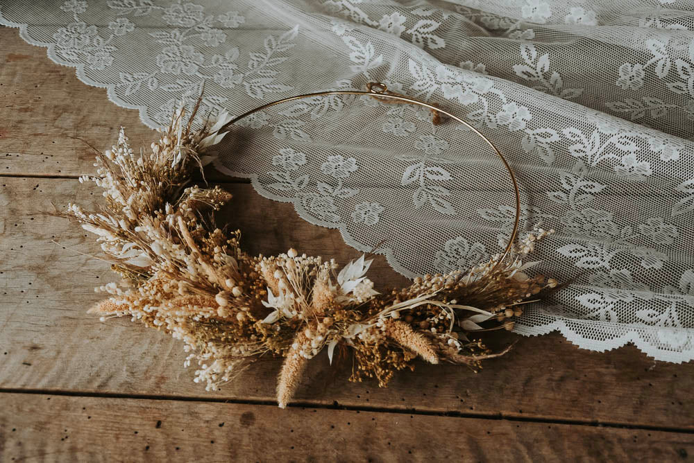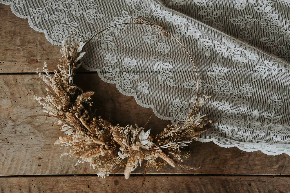 Kranz aus Trockenblumen. Als Geschenk eignet es sich zu den unterschiedlichsten Anlässen, wie zum Beispiel Geburtstag, Jubiläum, diverse besondere Erfolge, Schulabschluss, Studienabschluss, Jobwechsel oder einfach um einen schönen Tag zu wünschen.