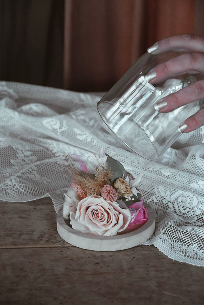 FLOWER FAIRY UNDER THE GLASS DOME Small "Pink"