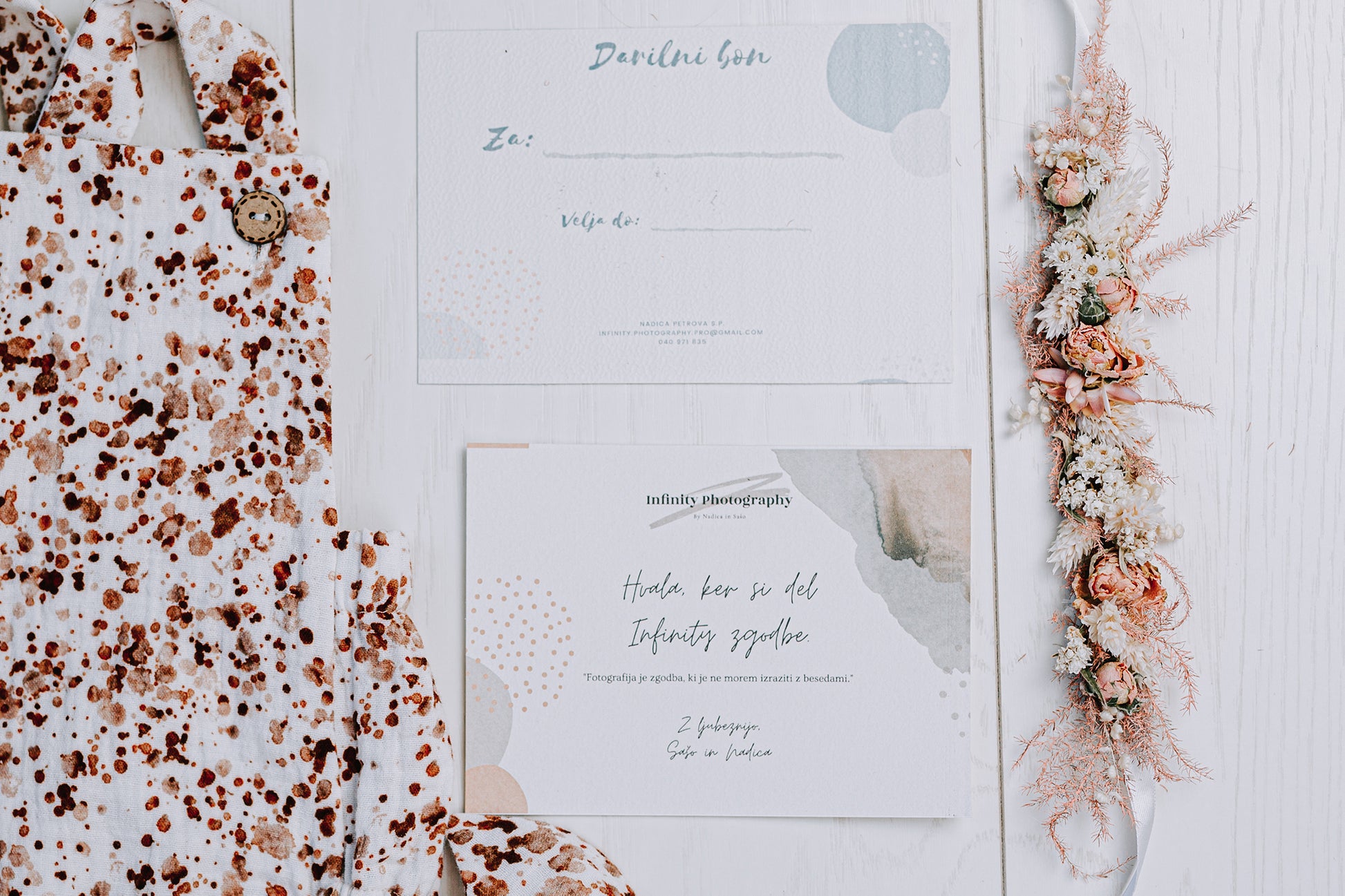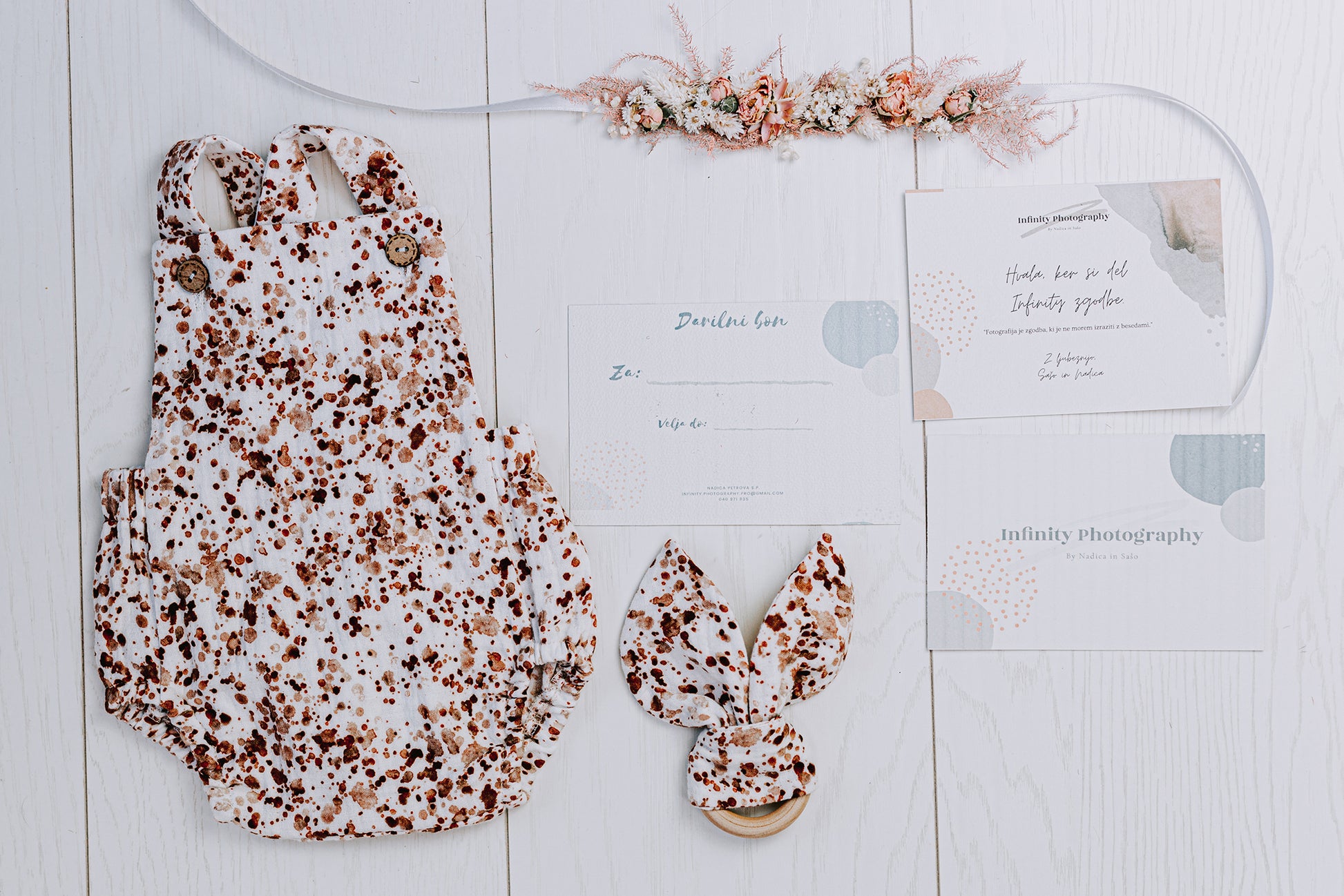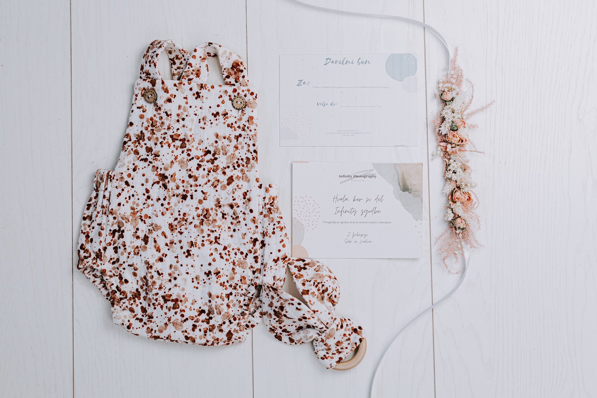 ROMPER, VENČEK IN DARILNI BON ZA FOTOGRAFIRANJE NOVOROJENČICE